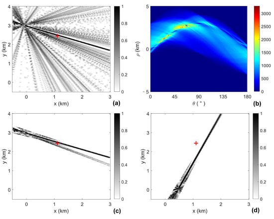 The Hough Transform [22] is a well-known algorithm used to identify line features in pattern recognition and image processing. The algorithm and its variants have many applications in diverse fields [23]. For our problems of interest, the Hough Transform was first used in 1980 by Smith [24] to separate the tracks of multiple targets. Later, in 1994, Carlson et al. elaborated the system design concepts, implementation and detection performance of using the Hough Transform to extract detections and tracks from search radar data maps in a series of papers [25], and noted that this concept is similar to Track-Before-Detect (TBD) algorithms [26]. Based on these works, the Hough Transform and its modified versions have been widely used in radar systems for target track initiation [27,28] and the detection of low observable targets [29,30,31,32], and have achieved better performance compared with conventional track initiation algorithms and Detect-Before-Track (DBT) algorithms.