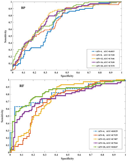 ROC curves of each model and different AINs.