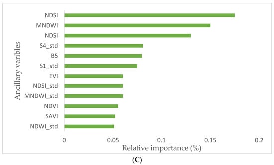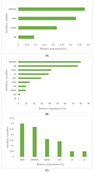 SMC is one of the fundamental factors of environmental biology that has a range of direct effects on plants, animal life, and microorganisms. Therefore, spatiotemporal awareness is essential in hydrological studies, soil sciences, environment, meteorology, irrigation, and drainage to improve water consumption efficiency [16]. While a range of on-site and laboratory methods can be applied for spatially explicit SMC measurement, each of them has disadvantages and advantages. For instance, laboratory methods are time-consuming, and soil sampling disturbs soil structure and can cover only a limited size of area. Moreover, in situ measurements of the SMC go along with pedoturbation [17]. Optical RS data became an attractive source of information to estimate different soil properties, such as the SMC [18,19]. Alternatively, satellite data can supply near real-time spatial–temporal observations over a vast area, which is hard to achieve using common field measurements [20]. Among the powerful RS techniques for precise estimation of this variable are data-driven models.