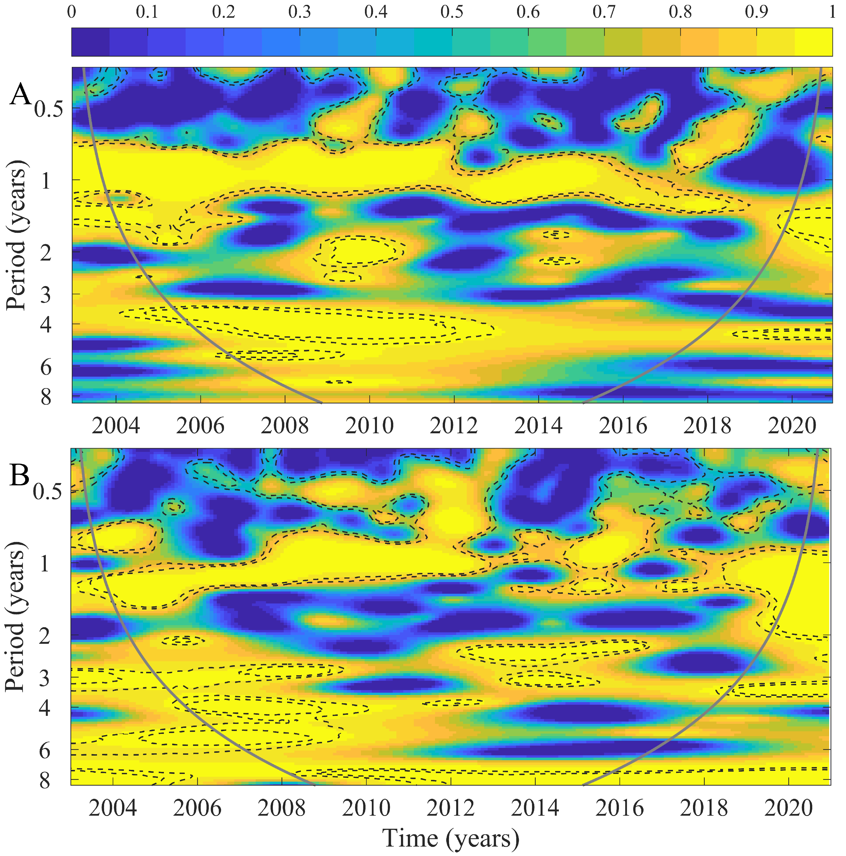 2.4. Wavelet and Temporal Synchrony in Northern Patagonia