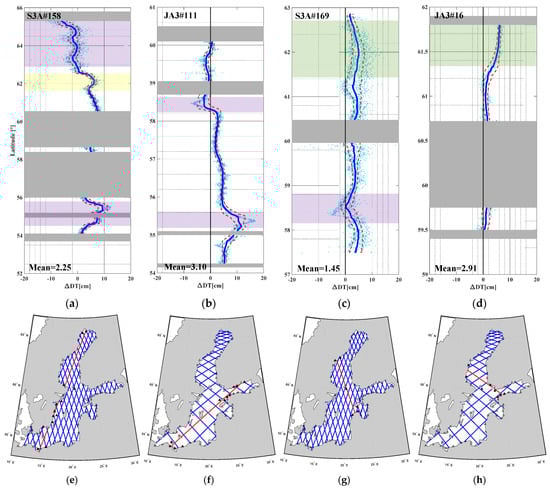 - Birgiel, E.; Ellmann, A.; Delpeche-Ellmann, N. Examining the Performance of the Sentinel-3 Coastal Altimetry in the Baltic Sea Using a Regional High-Resolution Geoid Model. In Proceedings of the 2018 Baltic Geodetic Congress (BGC Geomatics), Olsztyn, Poland, 21–23 June 2018; pp. 196–201. [Google Scholar] [CrossRef]