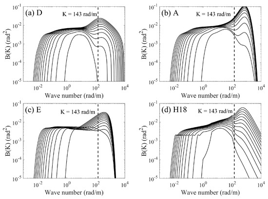 - Banner, M.L. Equilibrium spectra of wind waves. J. Phys. Oceanogr. 1990, 20, 966–984. [Google Scholar] [CrossRef]