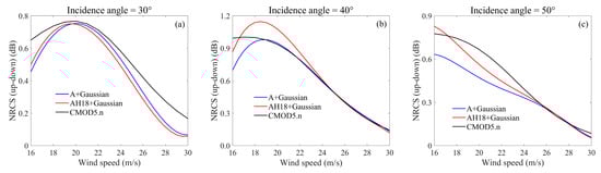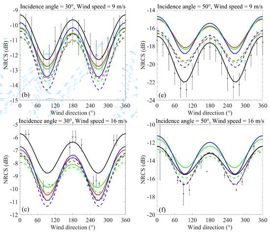 3.2. The Influence of Directional Wave Spectra on NRCS Simulation at Different Azimuth Angles