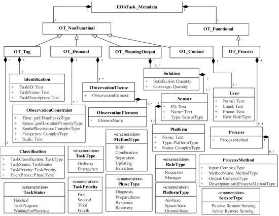 Finally, the EO task based on the seven-tuple information description components is defined in the UML diagram shown in Figure 4.