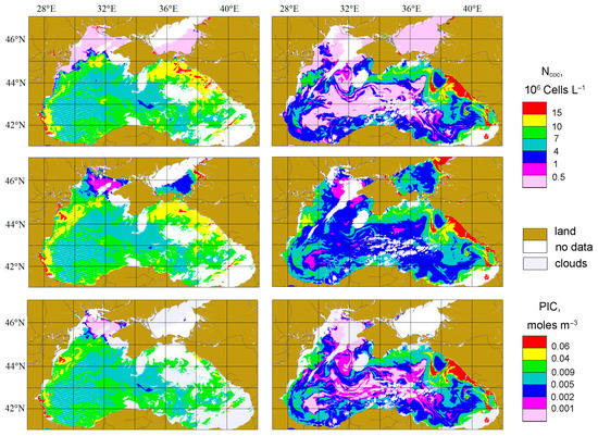 The following supporting information can be downloaded at: https://www.mdpi.com/article/10.3390/rs15092219/s1; Table S1. Abundance and biomass of Emiliania huxleyi, total phytoplankton biomass, and coccoliths abundance in 2017. Table S2. Abundance and biomass of Emiliania huxleyi, total phytoplankton biomass, and coccoliths abundance in 2022; MATLAB Script S1: Ncoc_BlackSea_regional.