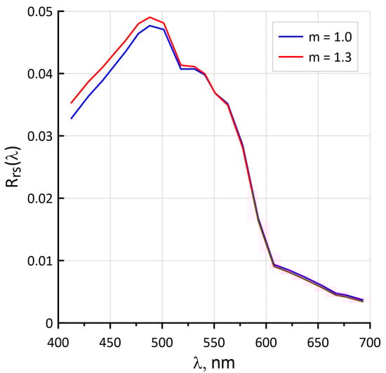 The results of modeling the Rrs(λ) spectra using the Hydrolight software with changes in the m value—the parameter of the spectral dependence of suspended matter backscattering—at station 3_17.