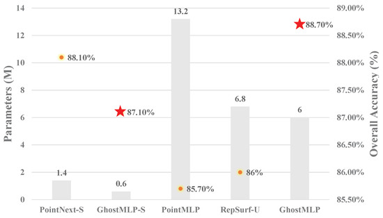 Figure 2. Architecturally, the GhostMLP is a selective combination of two other deep learning models: the PointMLP and PointNeXt. Through proper training strategies, the goal of GhostMLP is to develop an efficient point cloud object classification neural network, and it can extract more features using fewer resources, further minimizing computation time and running faster during practical use.