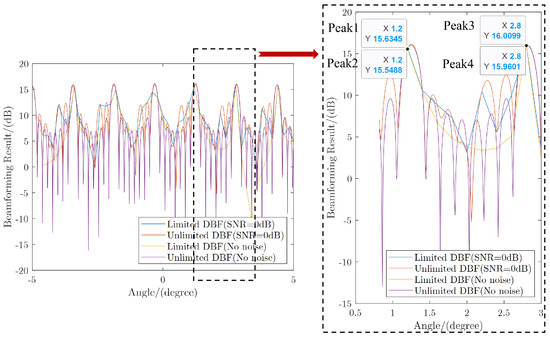 The ambiguous DOA estimations are obtained by performing DBF scanning on the received data. The specific process is performing beamforming at multiple receiving angles, as shown in (17) of the multi-channel data for each scanning beam, each frequency, and each range cell of the received data. Multi-dimensional search detection of the beamforming results in the range estimate and ambiguous DOA estimate of the target at each frequency being obtained.