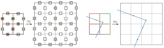 The and in Figure 7 represent the upsampling operations for edge occupation and vertex with a rate of 2, we demonstrate using a 2D grid as an example, and the process for a 3D grid is analogous. For , the edge occupation of each subgrid is repeated to the outer edge of the corresponding subgrid after upsampling, with the middle edge filled with a value of 0. For , the vertices in each subgrid of the current resolution are repositioned into the corresponding upsampled subgrid based on their relative position without adding any new vertices.