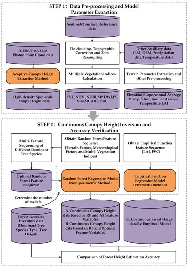 - Zhu, X.X. Based on ICESat-2 and GEDI Data, Research on Forest Height Retrieval with 30 m Resolution in China. Ph.D. Thesis, The Institute of Remote Sensing and Digital Earth (RADI), Chinese Academy of Sciences, Beijing, China, 2021. [Google Scholar]