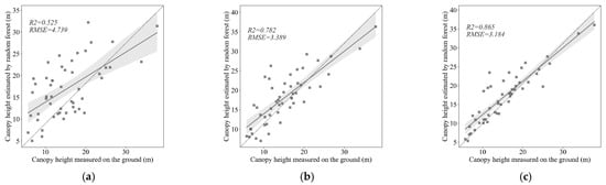 4.2. Inversion Results of the Forest Canopy Height Based on the Random Forest Regression