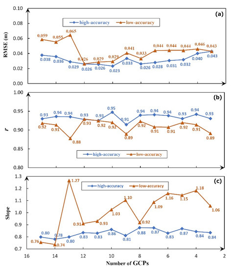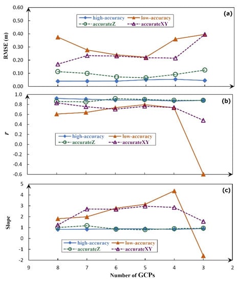 5.1. Influence of GCP Coordinate Errors under Different GCP Deployment Strategies