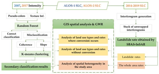This chapter introduces the estimation of landslide rates using SBAS-InSAR technology, the secondary classification method based on machine learning algorithms, and the analysis of the landslide spatial distribution with land use. The main flow of our method is shown in Figure 1.