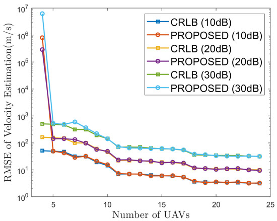 The localization performance with different numbers of UAVs is shown in Figure 11 and Figure 12. The RMSEs of target orientation and velocity estimations gradually decrease with the number of UAVs.
