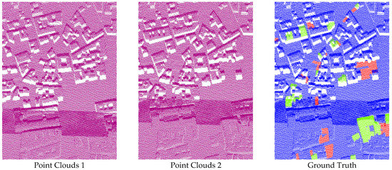 The acquisition of large-scale three-dimensional (3D) point clouds has become increasingly convenient with the development of 3D sensors such as depth cameras and lidar. This has led to the widespread use of 3D point clouds as a data source for change detection (CD) tasks. The aim of 3D CD studies is to identify changes in the geometric structure of objects. Effective 3D CD is critical to meet the growing demand in remote sensing fields, such as for updating the geographic information database [1], surveying urban development [2,3], monitoring forest change [4], and assessing landslide or building damage [5].