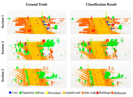 | Wang et al. [16] | Urban Area | 79.5 | ALS and oblique aerial photogrammetry | Points, deep learning, and machine learning | Natural terrain, Scanning artifacts, Low vegetation, Buildings, Hardscape, Man-made terrain, High vegetation, Cars | 84.8 | |
