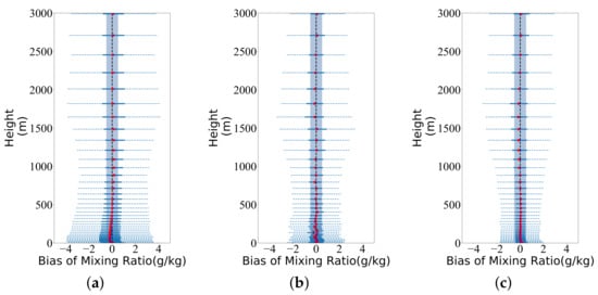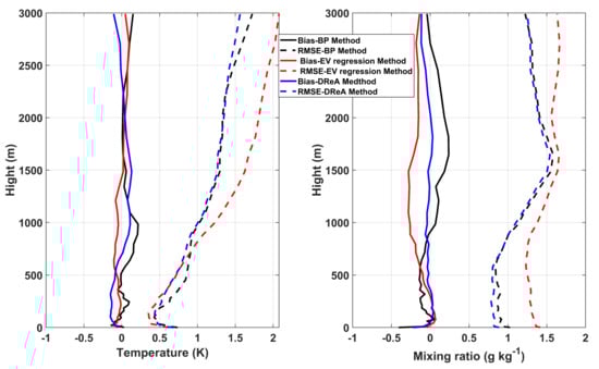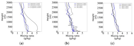(a–c) Water vapor mixing ratio profile on 29 January 2017 for EV regression, BP method, and DReA.