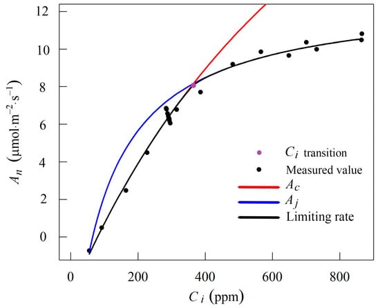 Finally, the V25cmax value corresponding to the best A–Ci fitting curve was determined as the final V25cmax calculation result. The example of the A–Ci fitting curve was shown in Figure 2. The specific operations were all performed using the R package “plantecophys” developed by Duursma [].