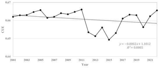 Annual average CUE between 2001 and 2022.