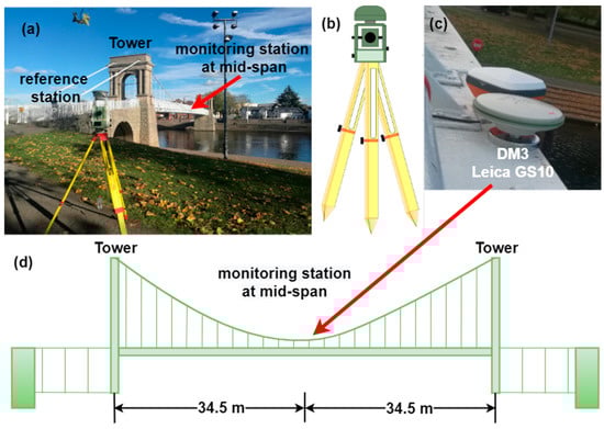 - Meng, X.; Nguyen, D.T.; Xie, Y.; Owen, J.; Psimoulis, P.; Ince, S.; Chen, Q.; Ye, J.; Bhatia, P. Design and Implementation of a New System for Large Bridge Monitoring—GeoSHM. Sensors 2018, 18, 775. [Google Scholar] [CrossRef]
