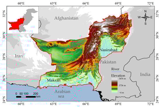 - Ashraf, M.; Routray, J.K. Spatio-temporal characteristics of precipitation and drought in Balochistan Province, Pakistan. Nat. Hazards 2015, 77, 229–254. [Google Scholar] [CrossRef]