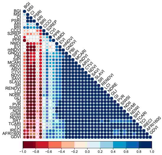 Correlation coefficient of each Sentinel-2 satellite-derived vegetation index.