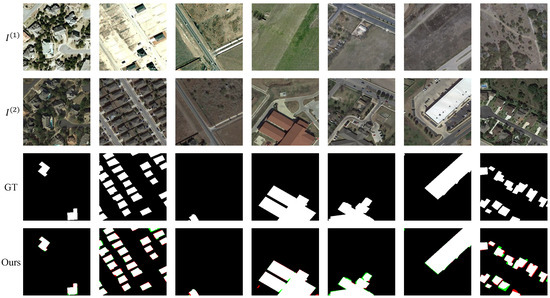 Remote sensing image change detection is the process of identifying and analysing changes [1] that have occurred over time in satellite or aerial images of a specific area or region. The process can quickly and accurately identify changes on the surface, thus providing valuable information for both research and practice. Change detection is widely used in various contexts, including urban expansion [2], disaster assessment [3,4,5], and land cover mapping [6]. Conventional change detection methods, which require handcrafted features to complement detection, are less general and more costly [7]. With the advancement of remote sensing technology, the spatial resolution of remote sensing images has increased. High-resolution remote sensing images have more intricate spatial structures and finer details than their low- and medium-resolution counterparts, resulting in objects with the same semantic concept displaying different spectral characteristics in different temporal and spatial contexts [8]. Additionally, as the resolution rises, background details and noise interference in the images expand, resulting in greater difficulty in accurately detecting and characterizing changes of interest. In summary, conventional change detection methods have become insufficient to meet contemporary requirements. There is a high demand for effective and intelligent change detection algorithms on high-resolution remote sensing images.
