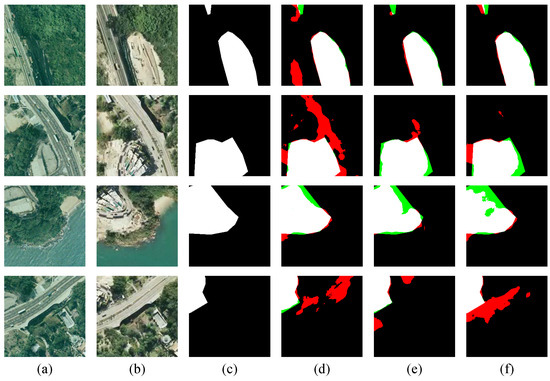 - Daudt, R.C.; Le Saux, B.; Boulch, A. Fully convolutional siamese networks for change detection. In Proceedings of the 2018 25th IEEE International Conference on Image Processing (ICIP), Athens, Greece, 7–10 October 2018; IEEE: Piscataway, NJ, USA, 2018; pp. 4063–4067. [Google Scholar]