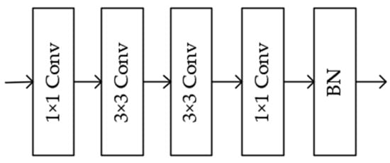 The structure of the convolution block. “1 × 1 Conv” represents a convolution layer with a kernel size of 1 × 1; “3 × 3 Conv” represents a convolution layer with a kernel size of 3 × 3; “BN” represents the Batch Normalization.