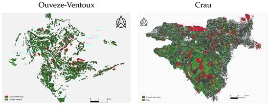 Sentinel-2 data are available at the following hyperlink: https://www.theia-land.fr/, accessed on 17 May 2022. THEIA classification data can be found at the following hyperlink: https://www.theia-land.fr/ceslist/ces-occupation-des-sols/, accessed on 17 May 2022. Inglada, Jordi, Vincent, Arthur, & Thierion, Vincent. (2018). Theia OSO Land Cover Map 2018 [Data set]. Zenodo. https://doi.org/10.5281/zenodo.3613415 (accessed on 17 May 2022). Plot boundary map and evaluation data over the CRAU and OUVEZE-VENTOUX are available on request from the corresponding author.