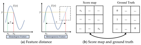 The processing of heterogeneous feature alignment. For the template image matching, intuitively, the feature distance of the heterogenous image is more significant than that of the homologous image, and the model fitting is difficult. Therefore, it is necessary to propose a method that can aid in model fitting when faced with heterogenous image matching.