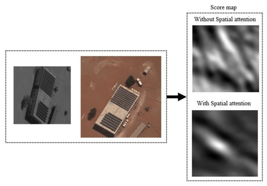 The high-score regions on the score map, represented by white areas, indicate the potential location of the template image. In our experiment, we chose the region with the highest score as the location of the template image. It is evident that the score map without spatial attention diverges entirely and cannot converge to the correct area.