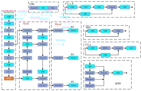 The backbone network primarily extracts feature information from input images. The C3 module and SPPF module are mainly used in the YOLOv5 network. The C3 module reduces model computation and improves inference speed, while the SPPF module extracts multi-scale information from feature maps, which is beneficial for improving model accuracy.
