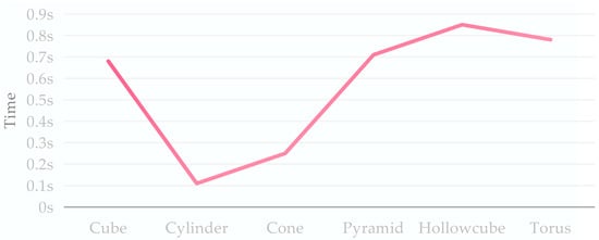 The experimental results are shown in Figure 4. The planar structures appear clustered as points on the Gaussian sphere, while the points at the edges are presented as isolated points on the Gaussian sphere due to the scattering of their normal vectors, as shown in Figure 4b. Then, after the clustering process, various geometric primitives are identified, while the outlier points are mainly distributed at the edges of the shapes, as shown in Figure 4c. These phenomena are exactly as expected. Finally, the outlier points are reassigned to achieve the fine segmentation of each shape, as shown in Figure 4d. Since there is no noise in the synthetic data, the proposed method can segment all points correctly. In addition, the execution time of the algorithm is shown in Figure 5. The algorithm’s time consumption is positively related to the number of point clouds.