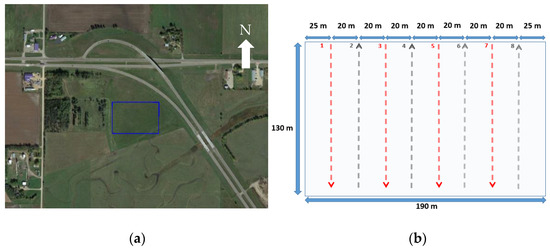 Area of Interest of North Airport Site for ASD and method of SR acquisition using ASD in the region of interest: (a) Aerial view of North Airport Site ROI; (b) Illustration of the method of collecting data with an ASD FieldSpec.