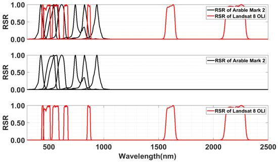 Relative Spectral Responses (RSR) of Arable Mark 2 SR and L8 OLI.
