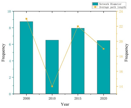 Diameter and average path length of forest–grassland ecological network in the study area from 2000 to 2020.