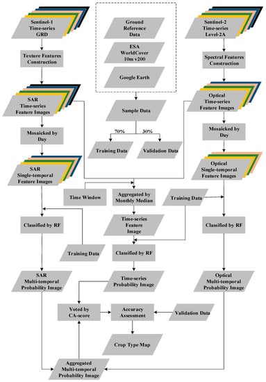 Flowchart of the proposed method for mapping crop types at a regional scale.
