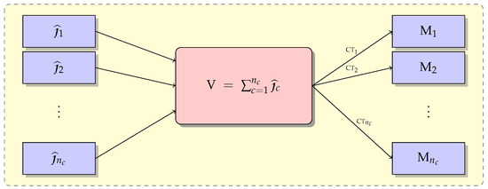 We generate binary images in which one denotes evidence of edge: , being , where is the number of channels. Build the frequency matrix V of the same size as , such that each position stores the frequency of occurrences of edge evidence in each channel ; i.e., V is the pixel by pixel sum of all edge evidence images . The larger the pixel value is, the higher its chance of being an edge. Apply thresholds , , to V and generate the edge evidence maps . The goal of this step is to estimate the optimal global threshold from the set of partial thresholds . Figure 4 shows the flowchart corresponding to this process.