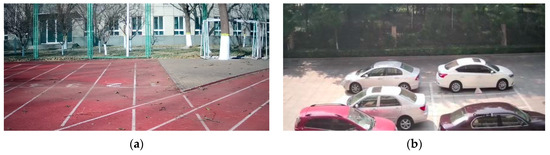 Optical image of Experimental Scene: (a) Scene 1: Moving Scene, (b) Scene 2: Parking Lot Scene.