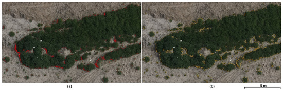 Classification errors in Data 1—yellow color indicates incorrectly classified pixels in detail.
