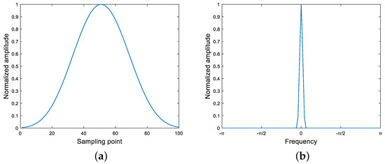 Comparison of an antenna pattern in different domains: (a) Antenna pattern in the azimuthal time domain and (b) antenna pattern in the azimuthal frequency domain.