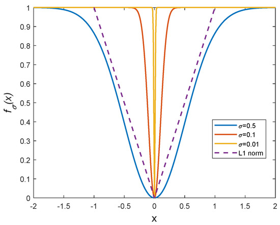 The accuracy of this approximation is controlled by the parameter . When is large, the approximation is poor, whereas when is very small, the approximation tends to be accurate. A small leads to stronger sparsity compared to the norm, as illustrated in Figure 3. Therefore, we provide a better approximation to the norm of the vector x as follows: