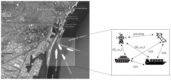 The proposed algorithm is compared with revised state-of-the-art algorithms under various performance metrics in two different use cases: (a) Non-Terrestrial-Network (NTN) connecting a ground station of a Low-Earth-Orbit satellite (LEO) and (b) Vehicular-to-Thing communication (V2X). Both scenarios can be adapted to provide position data for ships and vessels in the port of Barcelona for docking traffic management. Similarly, they can be adapted to provide location data for high-speed trains at Madrid Atocha railway station for the control of arrival and departure traffic. Figure 2 and Figure 3 illustrate the brief vehicle traffic in the port of Barcelona and at Madrid Atocha railway station, respectively. First, the performance characteristics of the proposed methods were investigated in single-user scenarios and then, the performance of the proposed algorithm was analyzed in the multi-user case [1] since in highly dense environments there might be tens of users.
