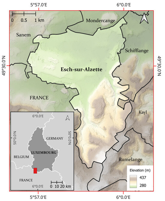 The area of interest is the commune of Esch-sur-Alzette, located in the southeastern portion of Luxembourg (Figure 1).