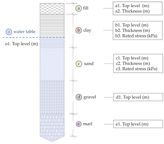 The parameters for the characterisation of soil properties depend on the disciplinary approach, the objectives, and the methods followed. In this case, the selection criteria were designed to provide an identification of the spatial and volumetric distribution of the main strata and their relationship to groundwater. In the same way, basic parameters related to the mechanical resistance of the shallow layers of the subsoil have been included, discarding those corresponding to the fill soil layer due to their low reliability (Figure 3).