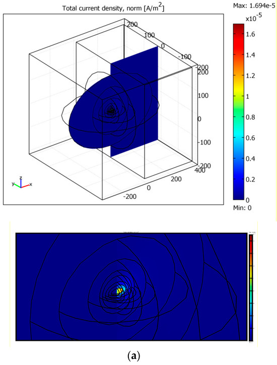 The relative permittivity of the air is 1; ε0 is the electric constant, SI units. In Equation (1), the ground boundary condition is applied at Earth’s surface SE and at the surface of the box SB. The electric fields is .