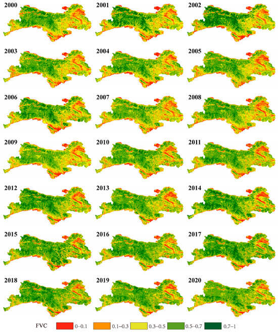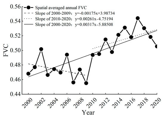 3.1.1. Spatio-Temporal Dynamic Changes of FVC