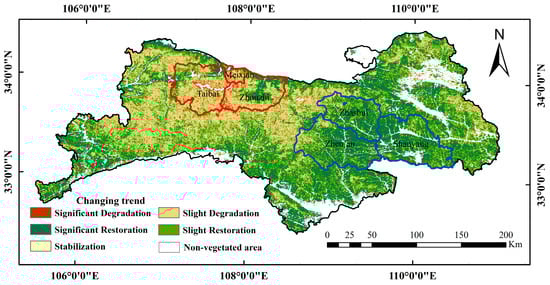 - Deng, C.; Bai, H.; Gao, S.; Liu, R.; Ma, X.; Huang, X.; Meng, Q. Spatial-temporal Variation of the Vegetation Coverage in Qinling Mountains and Its Dual Response to Climate Change and Human Activities. J. Nat. Resour. 2018, 33, 425–438. [Google Scholar] [CrossRef]