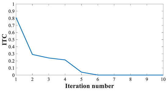 The relationship between the ITC of the WOA algorithm and the number of iterations is shown in Figure 16. The WOA algorithm gradually optimizes the network through iteration; after seven iterations, the network achieves the highest accuracy, and the ITC is close to 0.